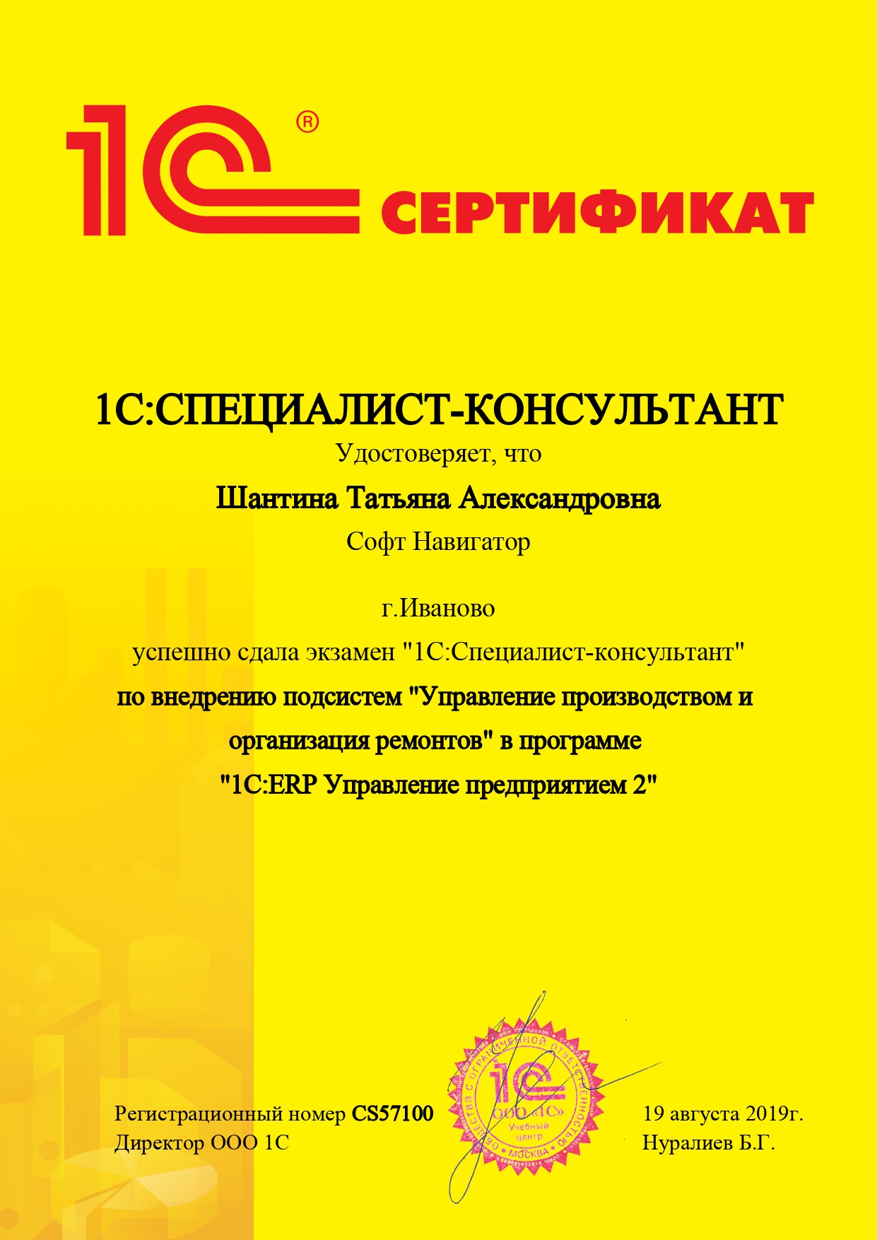 1С:Специалист-консультант по внедрению подсистем Управление производством и организация ремонтов в 1С:ERP 2