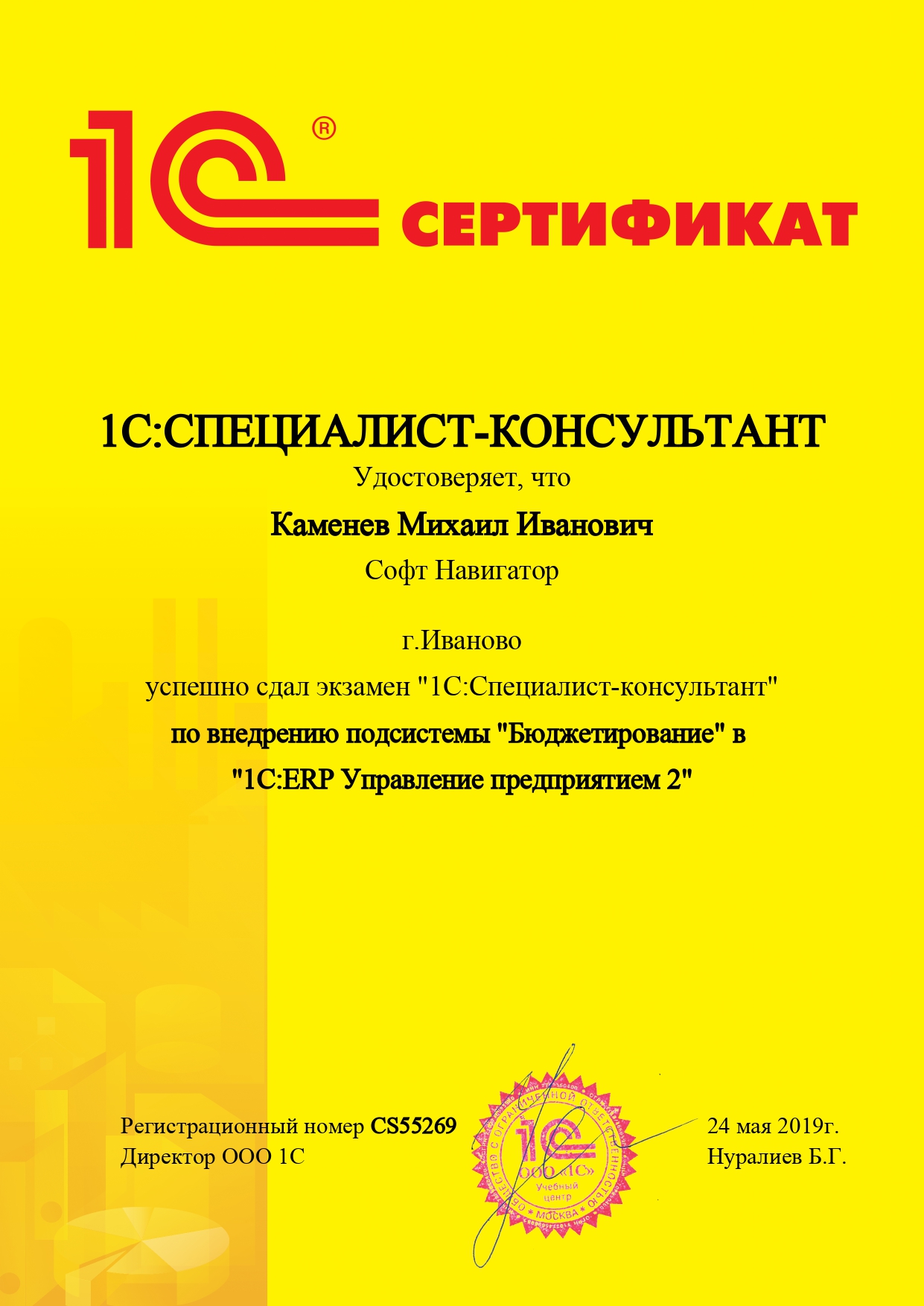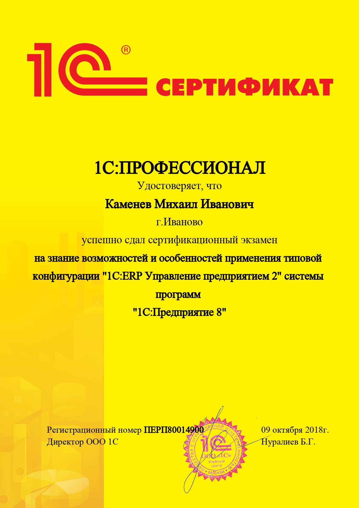 1С:Специалист-консультант по внедрению подсистем управленческого учета в 1С:ERP 2